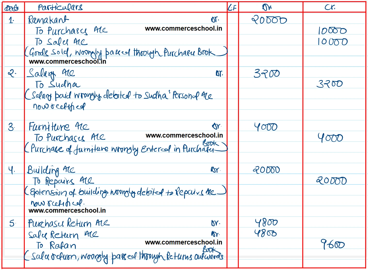 (1) A sale of goods to Ramakant for ₹ 10,000 was passed through the Purchases Book.