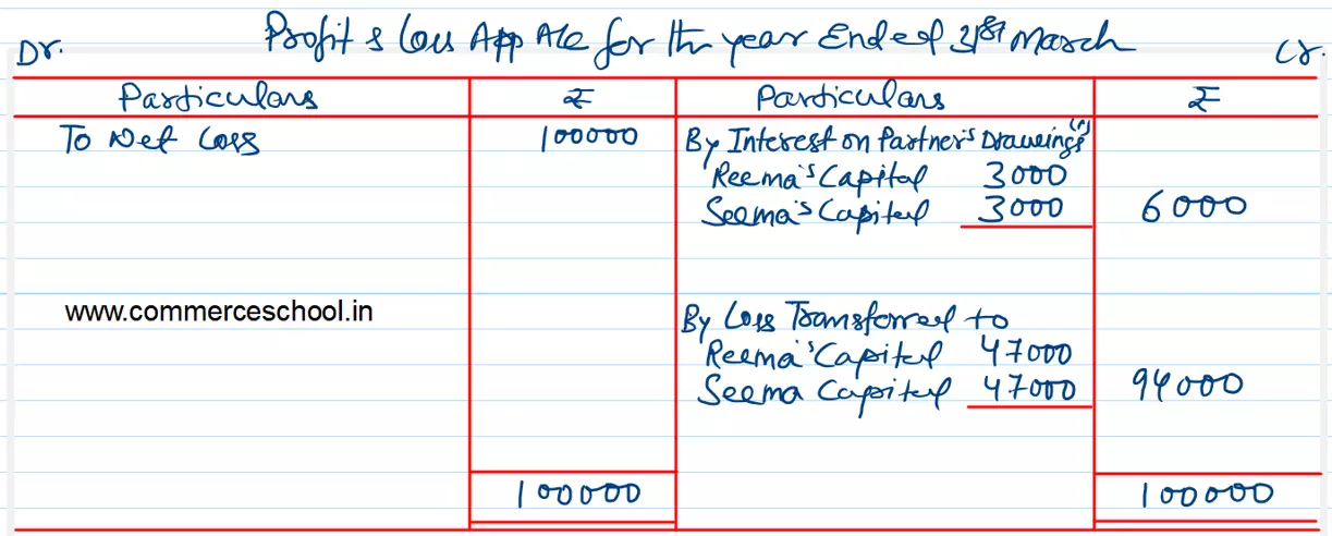 [Ans: Loss – ₹ 94,000; Reema’s Share – ₹ 47,000; Seema’s Share – ₹ 47,000.]