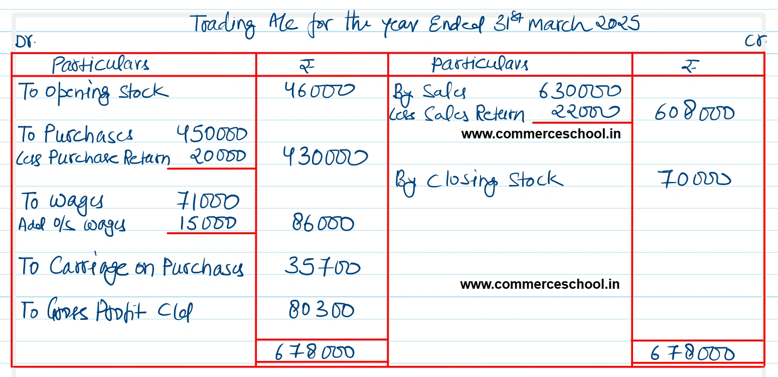 1. Closing Stock was valued at ₹ 70,000.