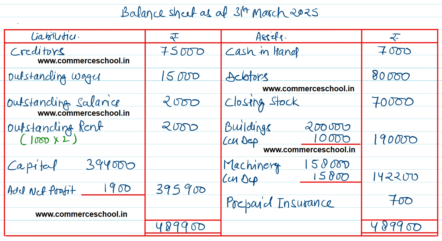 5. Prepaid Insurance ₹ 700.