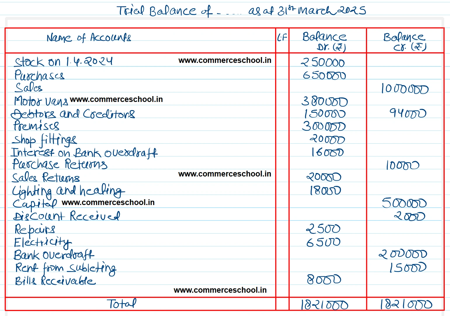 | Stock (1-4-2024) | 13,100 | Sundry Creditors | 8,200 |